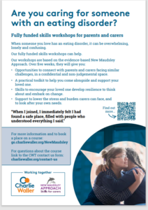 Please see the poster below for details of a fully funded workshop for parents and carers caring for someone with an eating disorder.