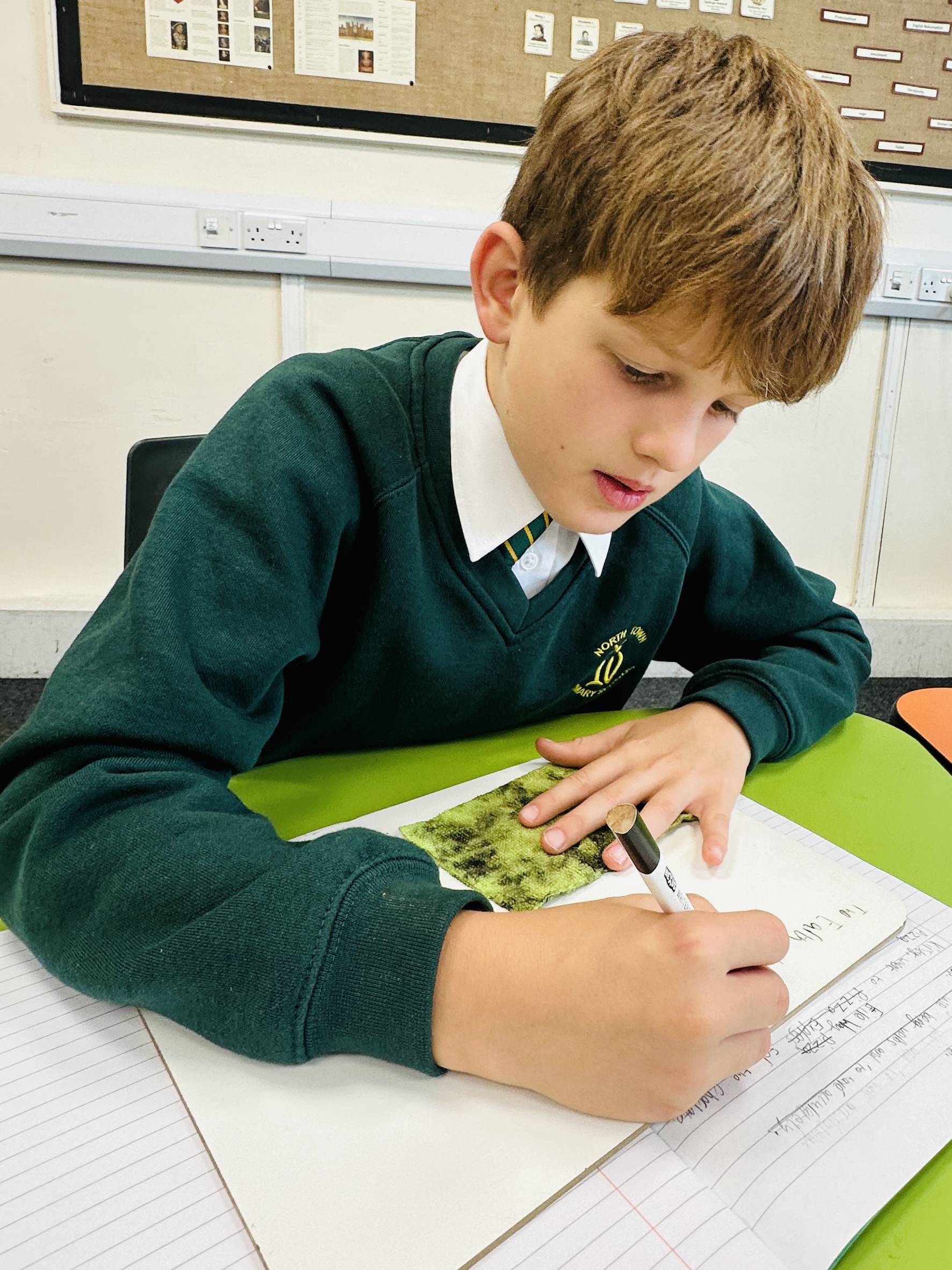 At North Town Primary School, we use the scheme The Write Stuff to develop the teaching and learning of writing. Within this scheme, the children learn to learn a range of non-fiction and fiction texts. The scheme aims to build pupils’ confidence with sentence structure, widen the repertoire of writing options for pupils, help pupils gain an understanding of the ‘whole’ piece that they are writing and help them to organise their ideas more effectively. Each unit of work will be made up of experience lessons and sentence stacking lessons, before children plan and write their own independent piece of writing.